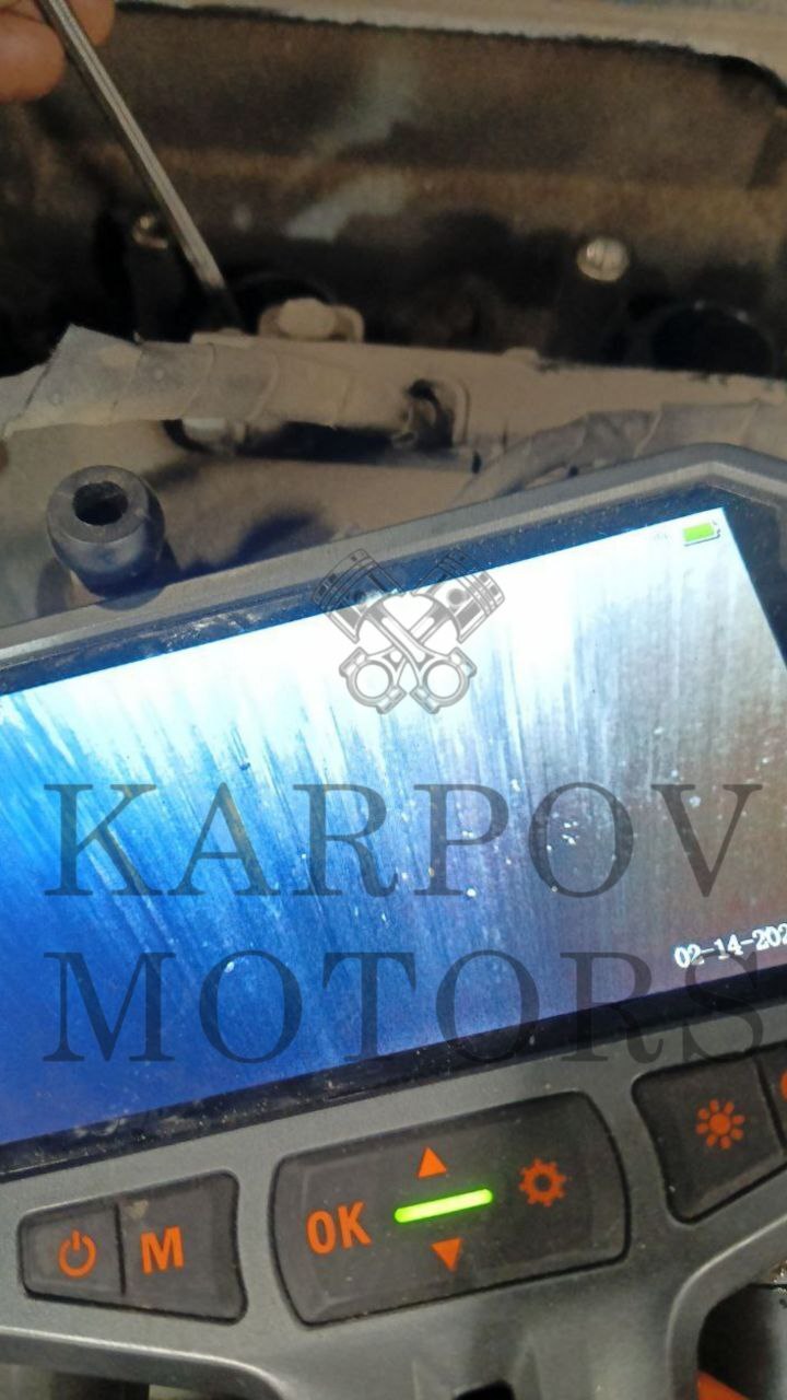 В ходе эндоскопического осмотра были выявлены задиры на стенках цилиндров, а также обнаружена металлическая стружка. Это свидетельствует о том, что двигатель находится на поздней стадии износа, и дальнейшая эксплуатация автомобиля без проведения ремонта может привести к более серьёзным повреждениям.