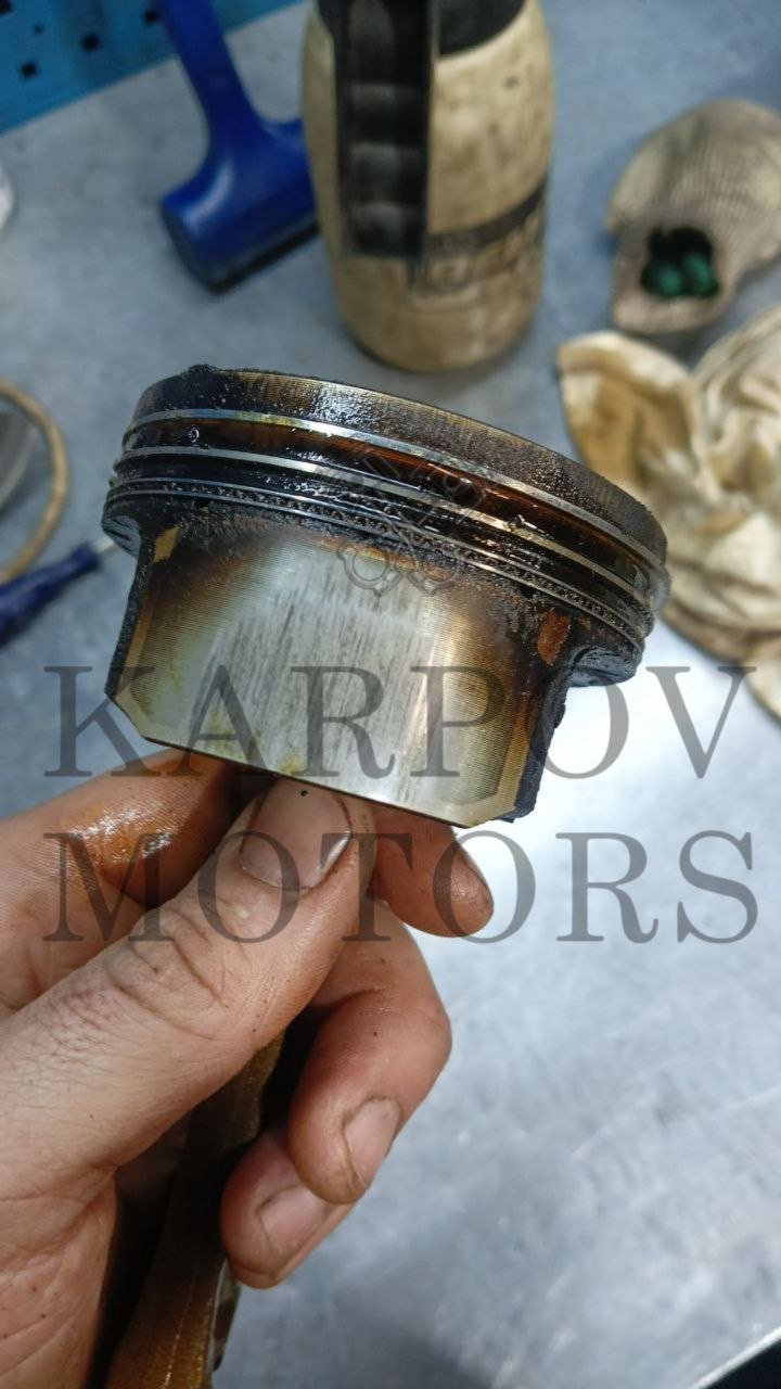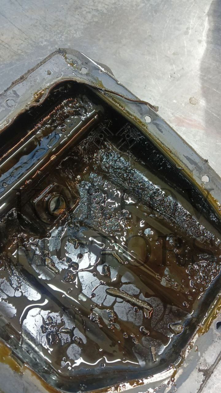 Дополнительно при осмотре было выявлено попадание антифриза в моторное масло, что является прямым следствием нарушения герметичности ГБЦ и говорит о серьёзных внутренних повреждениях двигателя.