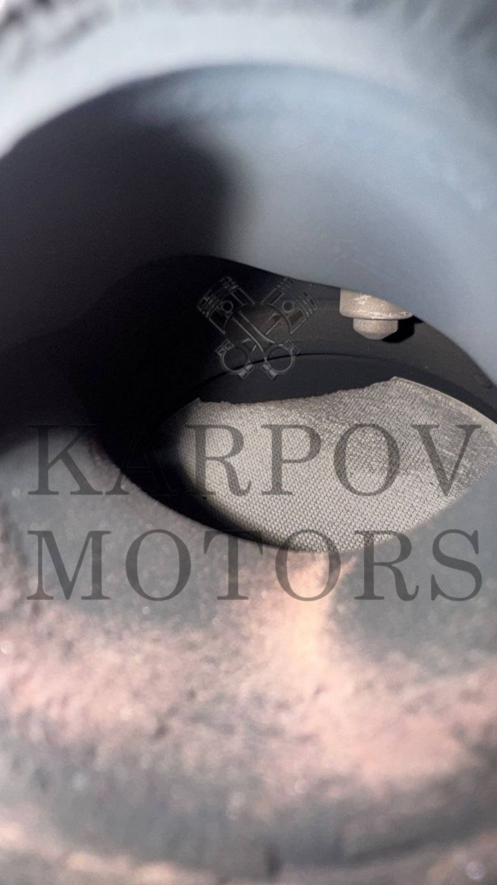 Эндоскопия показала серьёзные задиры на стенках цилиндров и наличие посторонних частиц. Затем проверили сам катализатор и обнаружили, что внутри отсутствует часть сот. Проще говоря, фрагменты разрушенного катализатора попали в двигатель.